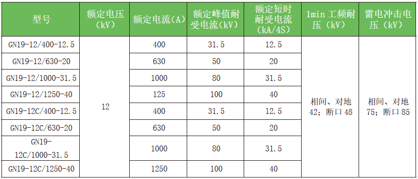 GN19-12(C) 户内高压隔离开关适用于交流50Hz、额定电压12kV 及以下额定电流小于1250A电力系统中, 作为在有电压而无负载情况下分、合电路之用。隔离开关可配用CS6-1 型手动操作机构, 可加装带电显示装置等。执行标准:GB/T 1985《高压交流隔离开关和接地开关》GB/T 11022《高压开关设备和控制设备标准的共用技术要求》